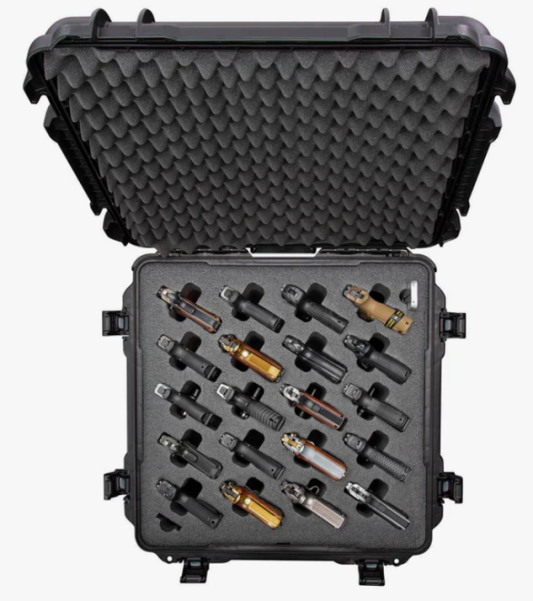 경찰 아카데미와 공동으로 개발된 NANUK 968 20 Up 권총 케이스는 트리거 락이 장착된 풀사이즈 권총 최대 20정과 탄창 20개를 안전하게 보관할 수 있도록 설계되었습니다.(총열 길이 최대 5인치까지의 모든 권총에 호환)