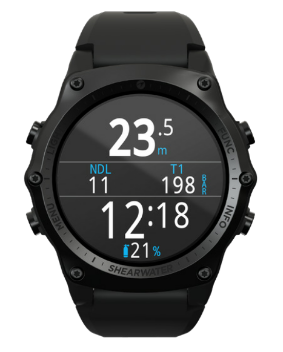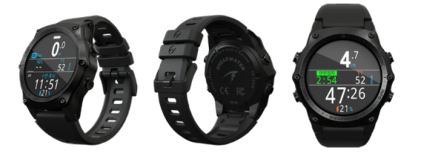 세련된 손목시계 폼 팩터에 모든 기능을 갖춘 멀티가스 트라이믹스 다이브 컴퓨터.